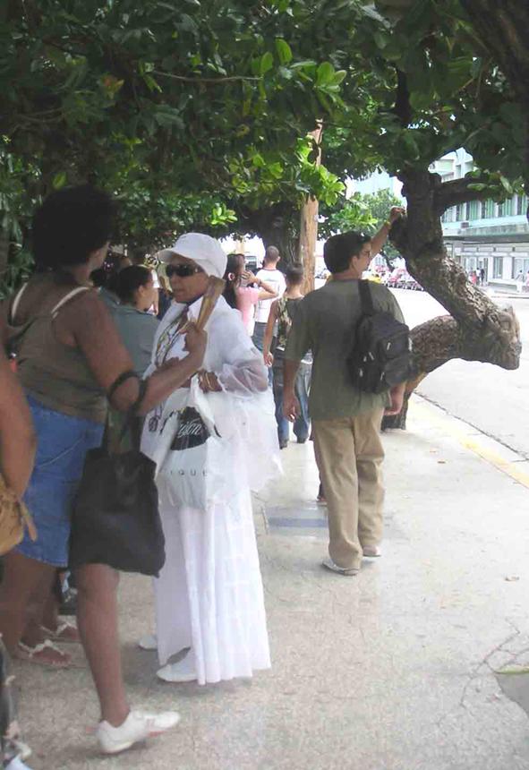 Cette femme tout habillée de blanc attend le bus à La Havane. Elle appartient à la religion la plus répandue sur l’île : la Santeria. La Santeria est un mélange de croyances vaudous venues avec les escaves africains du Niger et de christianisme, obligatoire sous la domination espagnole.