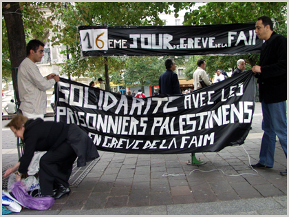 Photos du rassemblement, à Paris, le 30 août 2004, en soutien aux prisonniers palestiniens durant leur grève de la faim.