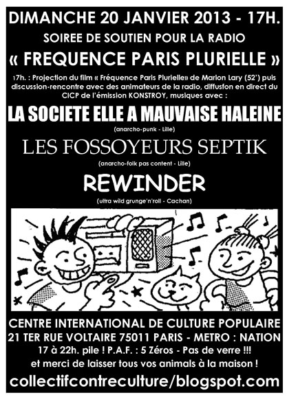 Accueil > Soirée de soutien à Frequence Paris Plurielle 106.3 MHz