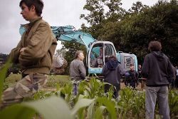 A la mi-journée, les pelleteuses se sont mises à l’ouvrage sous la surveillance des gendarmes et la quinzaine de militants qui avaient fait face un peu plus tôt aux gardes mobiles se sont retirés, a constaté un photographe de l’AFP.