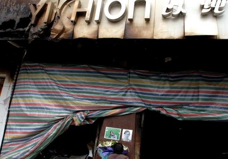 Ce magasin à Lhassa a été la cible des émeutiers vendredi dernier.