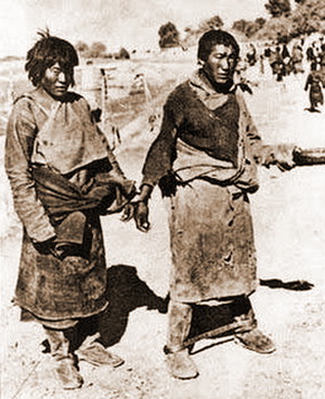 Les serfs, qui représentaient plus de 90% de la population de l’ancient Tibet, étaient considérés comme la propriété privée de leur seigneur, dont la famille du dalaï lama. Ce dernier possédait environ 80% des matériaux de production : terres arables, prairies et bétail.