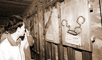 Dans le musée, une série de photos en noir et blanc montre la brutalité des propriétaires : des serfs aux yeux crevés, aux doigts coupés et aux tendons des pieds arrachés.