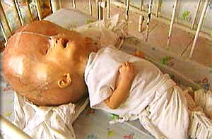 A l’hôpital Tu Du d’Ho Chi Minh Ville, depuis 1988, 30 % des nouveaux nés souffrent de malformations : bras ou jambes atrophiés ou déformés, palais fendu, spina bifida, enfants trisomiques. 1988, 17 ans après l’arrêt des largages de défoliants, les substances toxiques se retrouvent désormais dans les fruits et les légumes cultivés dans des sols gorgés de la dioxine produite chez Monsanto. Une deuxième génération née après la guerre est victime des armes chimiques utilisées par les Américains. « Ce ne sont pas des bébés qui naissent, ce sont des monstres » s’indigne le Dr Le Diem Huong après avoir donné naissance à un garçon dont les organes génitaux émergent du visage.