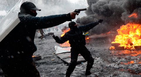 Un assaillant lancé contre la police ukrainienne avec un lance-pierre ou un arc avec des flèches, passe encore. Mais les photos de jeunes hommes casqués, le visage recouvert d’un passe-montagne, un pistolet ou un semblant d’arme automatique à la main, c’est choquant. L’EuroMaidan, ce mouvement de protestations antigouvernementales, que l’on décrit, de manière de moins en moins justifiée, comme une mobilisation proeuropéenne, n’était-il pas constitué d’étudiants, de retraités, de classes moyennes et de citoyens lambda, désireux d’assurer un meilleur avenir pour l’Ukraine ? Que s’est-il passé pour que les manifestants en viennent à recourir à cette extrême violence ? Et si les allégations de « militants fascistes » et « d’extrémisme », véhiculées par le régime de Victor Ianoukovitch à l’encontre de ses opposants, étaient fondées ?