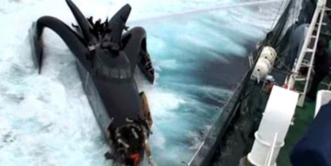 - Crédits photo : Le trimaran ultra-rapide de l’ONG Sea Shepherd, l’« Ady-Gil » a été détruit en 2010 après une violente collision contre un navire de pêche japonais au large des côtes australiennes.