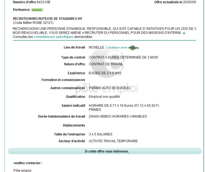 1. Un nouveau métier : Recruteur de stagiaire (offre pole emploi 843310B) Photo, 22 mai 2009, 17:22, par momo11