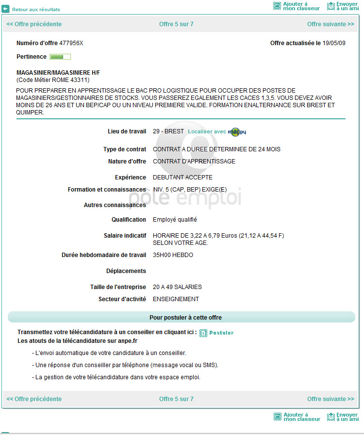 2. Une offre d’emploi pole emploi à 3,22 euros de l’heure, 23 mai 2009, 22:01, par Logique