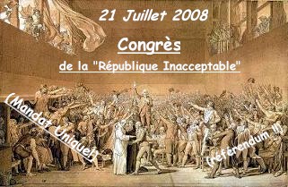 Publie le samedi 12 juillet 2008 par Open-PublishingLe Congrès de Versailles approche. Nous sommes très loin de la « République Irréprochable » annoncée par Sarkosy, et de l’annonce faite par le rapport du comité Balladur intitulée « une V éme république plus démocratique ». Cette réforme est un leurre, faite de faux semblants qui ne correspondent pas du tout à l’exigence actuelle d’une démocratie citoyenne. Il y a urgence.