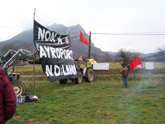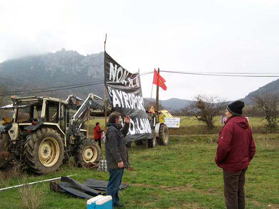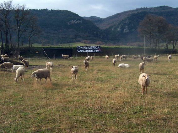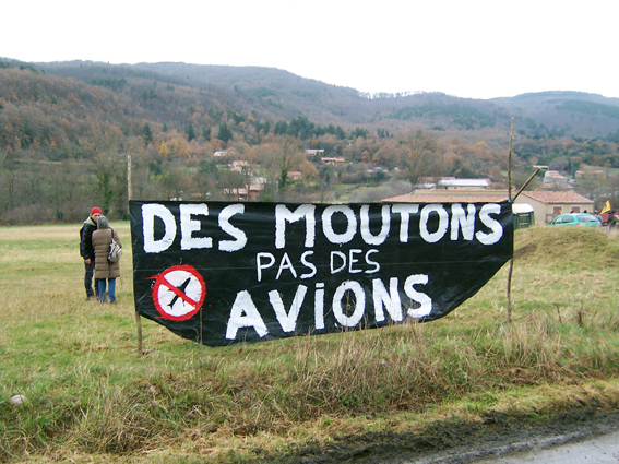 200 journalistes attendaient hier 21 décembre 2012 à Bugarach dans l’Aude (Occitània) la fin du monde, et/ou les extra-terrestres, et/ou la Sainte-Vierge, le tout sécurisé par encore plus de flics de toutes les sortes, à cheval, à pied, en hélicoptère, ou en civil. Tant de flics et d’engins policiers, histoire de bien utiliser le fric public... Mais las fedas (en français, les brebis) se sont invitées au rencard apocalyptique pour dénoncer Vinci et exprimer la solidarité occitane à la résistance bretonne contre le projet inutile de Nôtre Dame des Landes, aux cris de "Vinci dégage, résistance et sabotage", "des moutons pas des avions", "Ayrault salaut, le peuple aura ta peau", "des moutons pas des éléphants", "la terre à ceux qui la travaillent", etc...