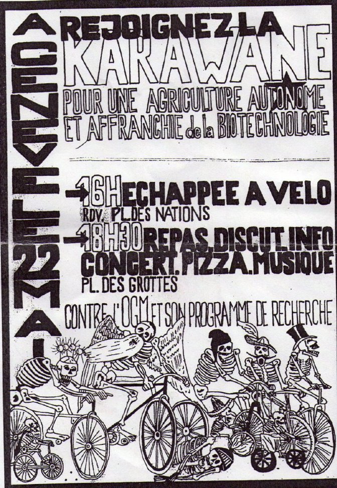 – Une dame de Radio Enghien aussi paraissait pessimiste, je lui parlait longuement, de cet homme et d’aussi de ce jeune couple venu signer le manifeste le matin, le jeune homme parlait de sa mère malade de la thyroïde, ils semblaient pleinement conscient de ce que nous dénonçons. C’est ces jeunes que l’on veut voir et qu’on ne montre pas dans les médias, les médias aux ordres montrent que des jeunes casseurs pour les stigmatiser, la violence... Ils ne montrent pas les jeunes « constructeurs » que nous voyons régulièrement dans les rues et dans ces réseaux, il y a des millions de « jeunes de Tarnac » dans le monde et c’est sur eux qu’il faut compter. J’en avais déjà vu lors du passage de la « Karavane » anti OGM à Genève