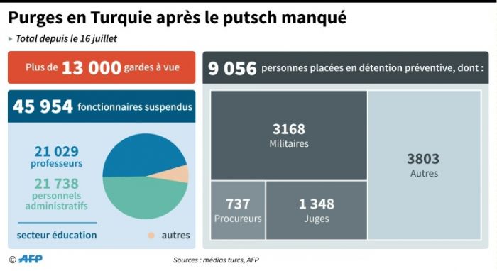 "Ils ont été limogés pour leur complicité dans la tentative de coup d’Etat", a déclaré ce responsable, précisant qu’il s’agissait de 87 hauts gradés de l’armée de terre, 30 de l’armée de l’air et 32 de la marine.