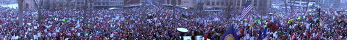 Le Parti républicain contrôle la Chambre et le Sénat – porté en novembre par la vague électorale du Tea Party – mais la loi reste bloquée au Sénat. Les quatorze sénateurs démocrates se sont réfugiés dans l’Illinois pour ne pas avoir à la voter, ce qui rend son passage impossible. Il va sans dire que l’importance de la mobilisation et sa popularité dans l’opinion au Wisconsin ont contraint les sénateurs démocrates à quitter l’État.