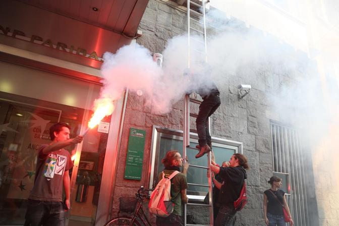 Chiusa con barricate la Banca d’Italia a Venezia, verso il #18M a