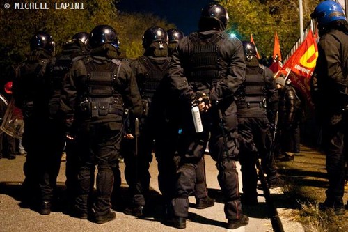 Cos’è quella bomboletta ripresa dal reporter di Zeroincondotta in mano a un carabiniere durante la manifestazione al Cie di ieri sera? Per la redazione del sito bolognese sembrerebbe proprio uno spray. Ma la sperimentazione sul peperoncino nelle dotazioni a polizia e carabinieri non dovrebbe iniziare che il mese prossimo, essere limitata a Roma, Napoli e Milano, e non riguardare le manifestazioni di piazza. Non basta: i redattori di Zic.it hanno ingrandito l’immagine e probabilmente non si tratta di peperoncino. Si legge, infatti, "Police CS". E Cs è la sigla che comunemente identifica l’orto-clorobenziliden-malononitrile, ovvero il più tossico dei gas lacrimogeni usati nella gestione dell’ordine pubblico. Quello di cui le forze di polizia abusano da anni in Valsusa, causando intossicazioni anche gravi ai manifestanti. Le convenzioni internazionali lo vietano come un’arma chimica in caso di utilizzo in guerra.