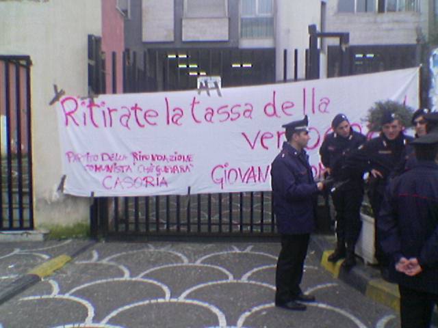 Publie le mercoledì 22 dicembre 2004 par Open-PublishingMille casoriani in piazza contro l’aumento delle tassa sulla spazzatura e contro la repressione della polizia. La settimana scorsa 4 militanti di Rifondazione Comunista hanno ricevuto avvisi di garanzia.La Polizia era stata chiamata dal Sindaco De Rosa e dalla sua giunta cosiddetta di centro-sinistra. L’80% dei consiglieri dei partiti della maggioranza consiliare assenti. Assenze che hanno determinato il mancato svolgimento del consiglio comunale. “Buffoni, Buffoni”. “Sindaco De Rosa dimettiti”. Piazza Cirillo, gremitissima di manifestanti, si è infuocata. Forte schieramento di carabinieri . Stavolta la celere ed i poliziotti di Afragola non erano presentei dopo le polemiche e le accuse per le violenti cariche della settimana scorsa. Mille cittadini casoriani. Pensionati, studenti, commercianti, artigiani. Massiccia la presenza dei lavoratori precari della Castaldo. A sostenere la lotta dei cittadini casoriani Rifondazione Comunista. In prima fila il consigliere comunale Gennaro Laudiero e il leader locale Vincenzo Russo. La giunta comunale De Rosa è spaccata. Il primo cittadino non vuole sentire ragioni. L’aumento della tassa per il 2004 non può essere revocato. Un aumento ingiustificato. Un aumento senza motivo. “Il Sindaco De Rosa sostiene che l’aumento è dovuto al grave deficit di Casoria Ambiente (la società mista per la raccolta dei rifiuti n.d.r) - spiega Amedeo F. - E’ una bugia. Gli aumenti servono per tappare i buchi dovuti al dispendio di risorse per forniture e subappalti vari affidati senza controllo e senza trasparenza”. L’aumento della tassa è stato legittimato da un accordo stipulato tra i sindacalisti locali confederali e il sindaco De Rosa. “Qualche dirigente della Cgil locale è troppo subordinato all’amministrazione comunale - afferma Francesco C. - un militante di Rifondazione Comunista. Il sindacato deve essere autonomo dall’amministrazione comunale e difendere gli interessi reali dei cittadini e dei lavoratori”. Sull’aumento della tassa sui rifiuti fioccano i primi ricorsi alla magistratura. Le associazioni dei commercianti stanno organizzando la raccolta delle bollette e hanno deciso di affidarsi agli avvocati. Natale amaro per la giunta De Rosa. Una giunta travolta dai problemi sociali ed occupazionali. Una giunta divisa e lontana dai reali bisogni dei lavoratori e dei cittadini. Solo Rifondazione Comunista si oppone con tenacia al malgoverno. Altri gruppi politici dell’opposizione sono assenti o si apprestano a passare nella maggioranza.
