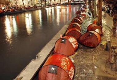 Tents for homeless people line the Canal Saint Martin in Paris, a few hours before the new year, December 31 2006. The French association ’Enfants de Don Quichotte’ (Children of Don Quichotte) set up the tents on December 17 to draw attention to the need for long-term accommodation solutions for the city’s homeless. REUTERS/Charles Platiau (FRANCE)