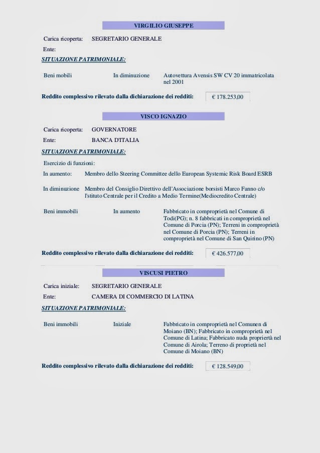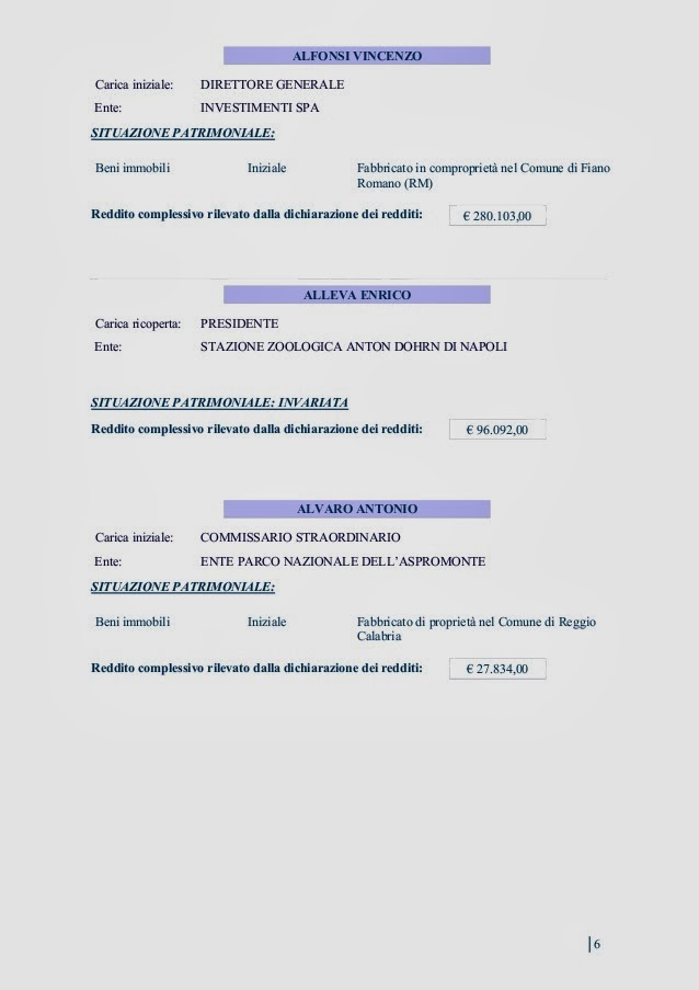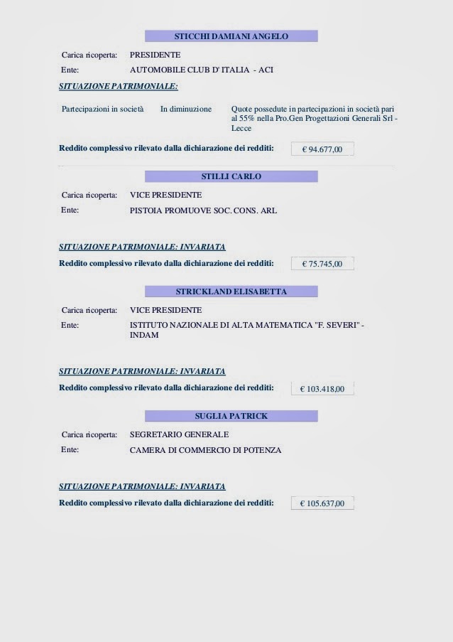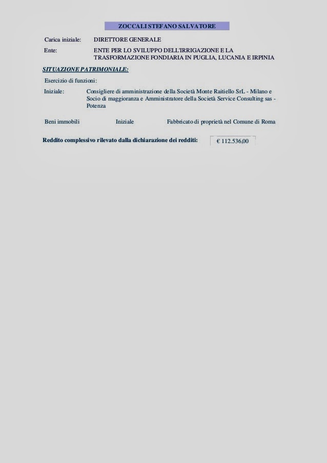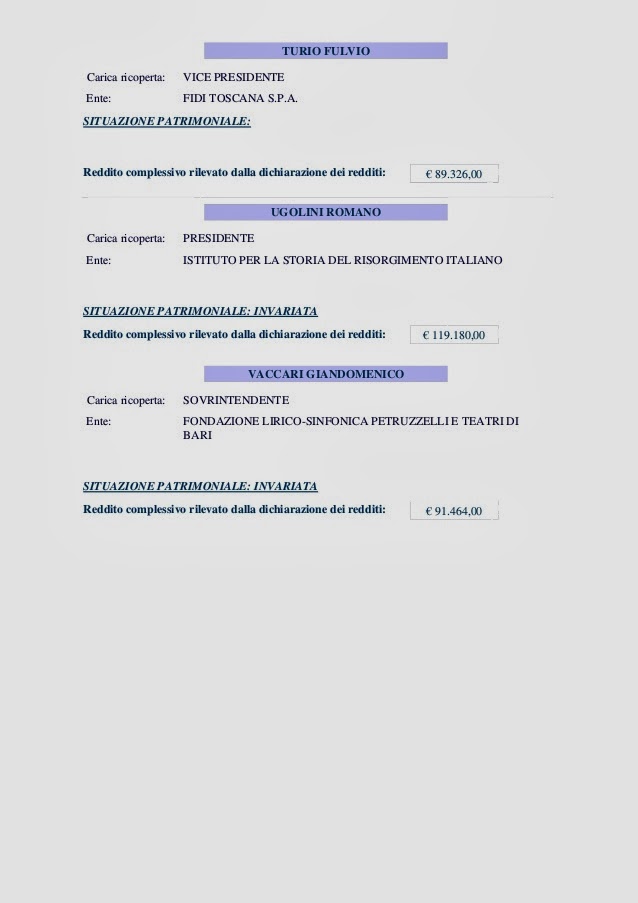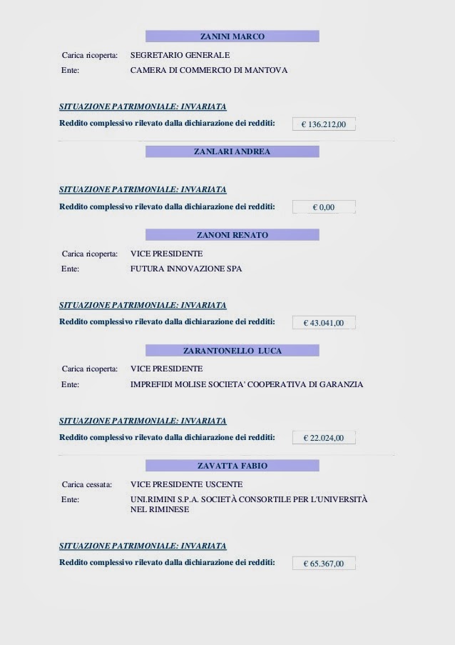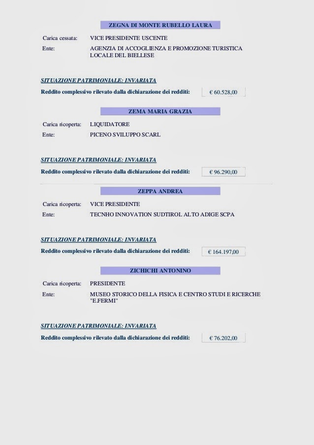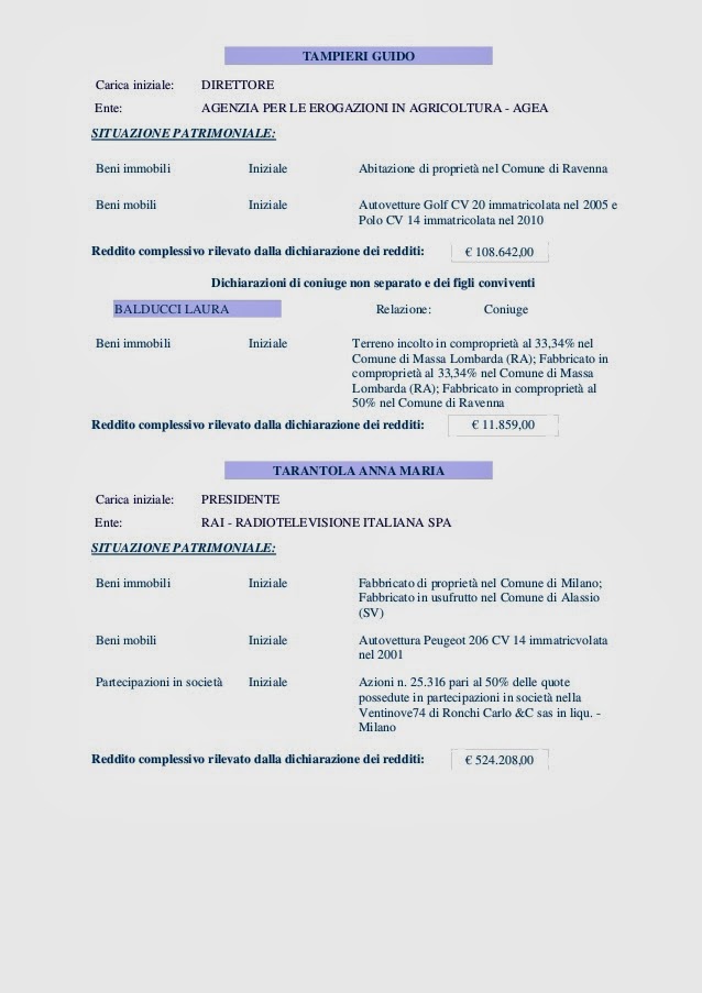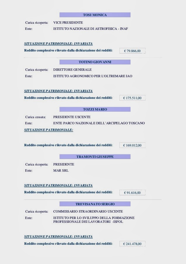 Dalla A di Abate (Pietro, segretario Camera di commercio di Roma) alla Z di Zoccali (Stefano Salvatore, direttore generale dell’ente per l’irrigazione della Puglia, Lucania e Irpinia) eccoli tutti i redditi e i patrimoni dei dirigenti dello Stato e della Pubblica amministrazione, degli enti pubblici, delle aziende autonome e speciali, nonché delle controllate dallo Stato