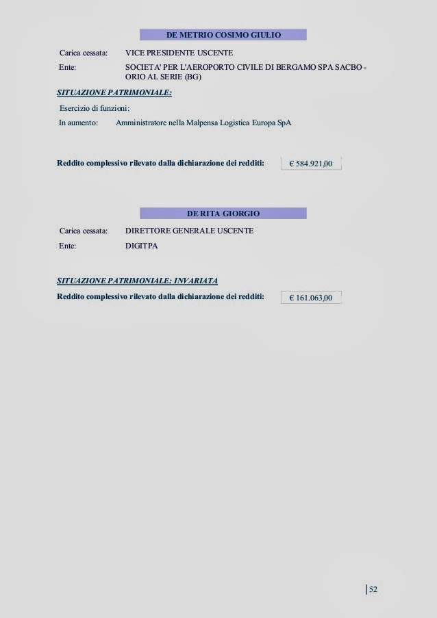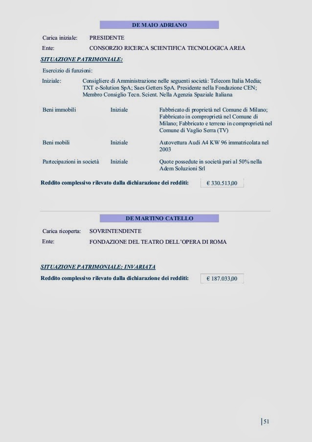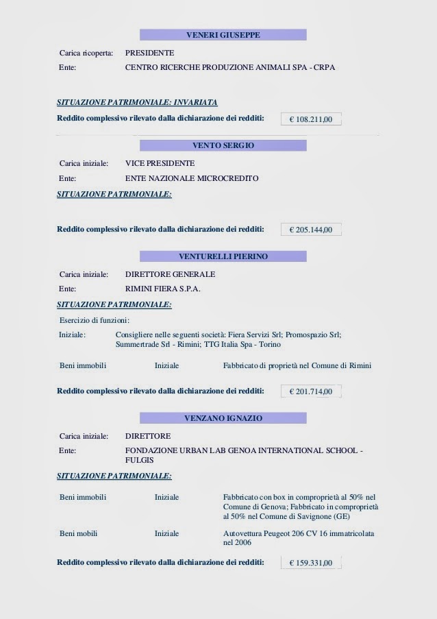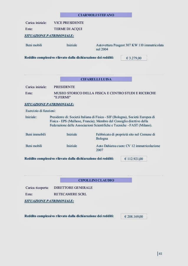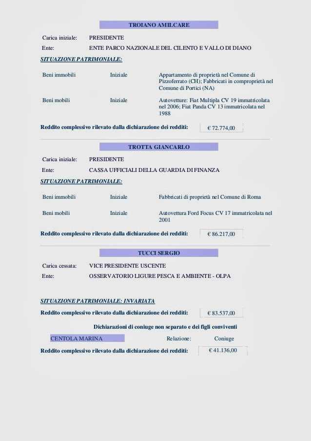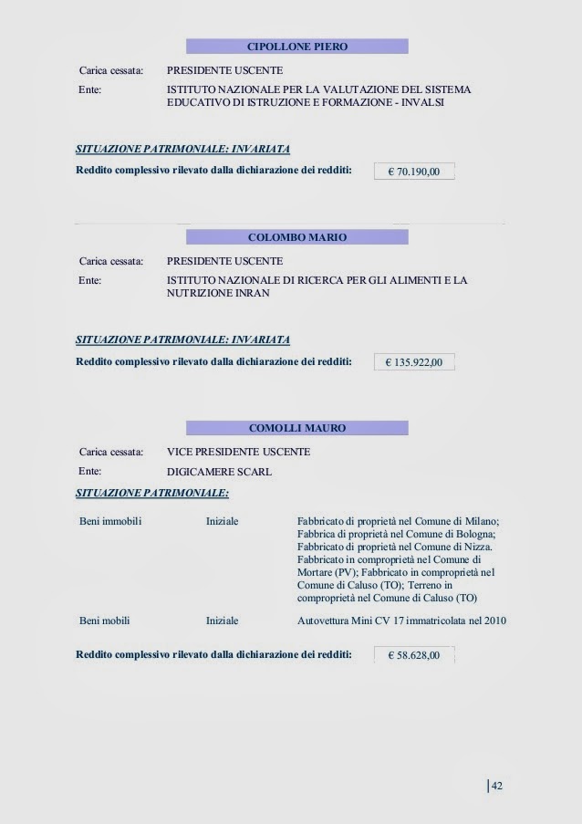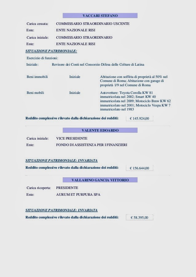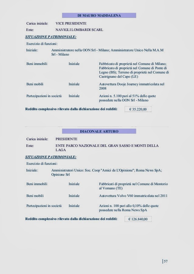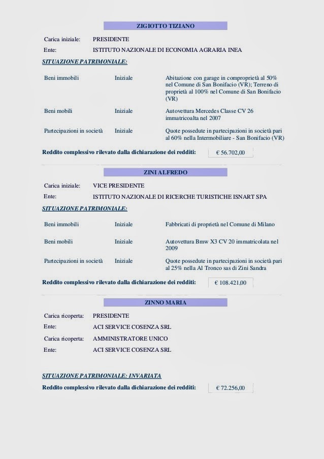 Dalla A di Abate (Pietro, segretario Camera di commercio di Roma) alla Z di Zoccali (Stefano Salvatore, direttore generale dell’ente per l’irrigazione della Puglia, Lucania e Irpinia) eccoli tutti i redditi e i patrimoni dei dirigenti dello Stato e della Pubblica amministrazione, degli enti pubblici, delle aziende autonome e speciali, nonché delle controllate dallo Stato