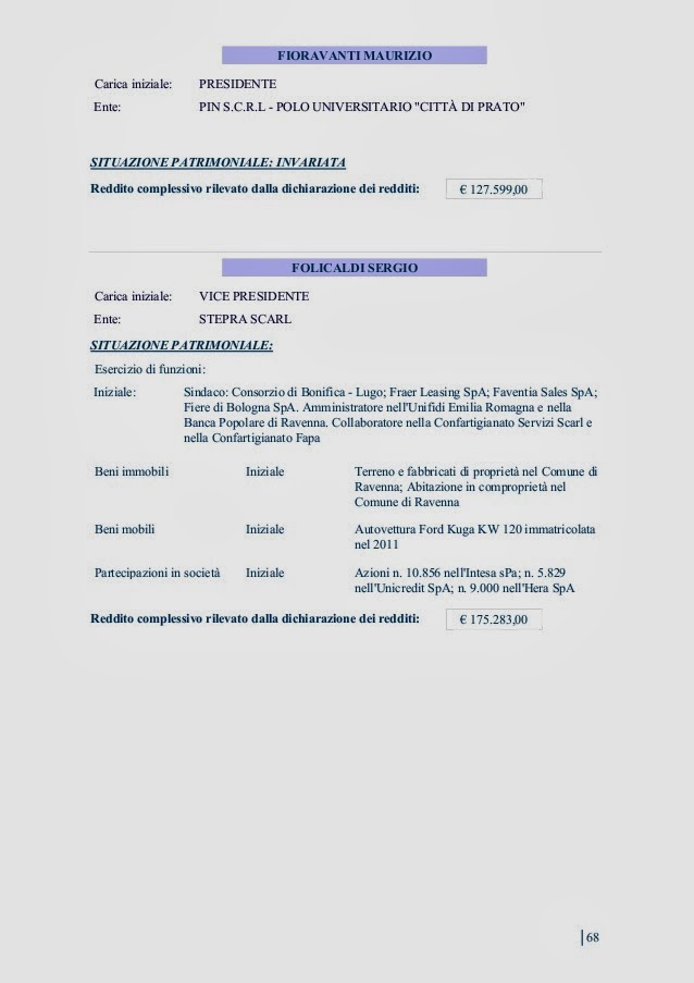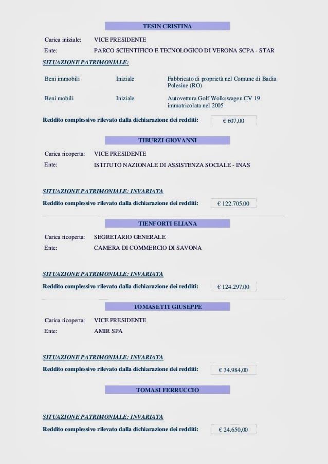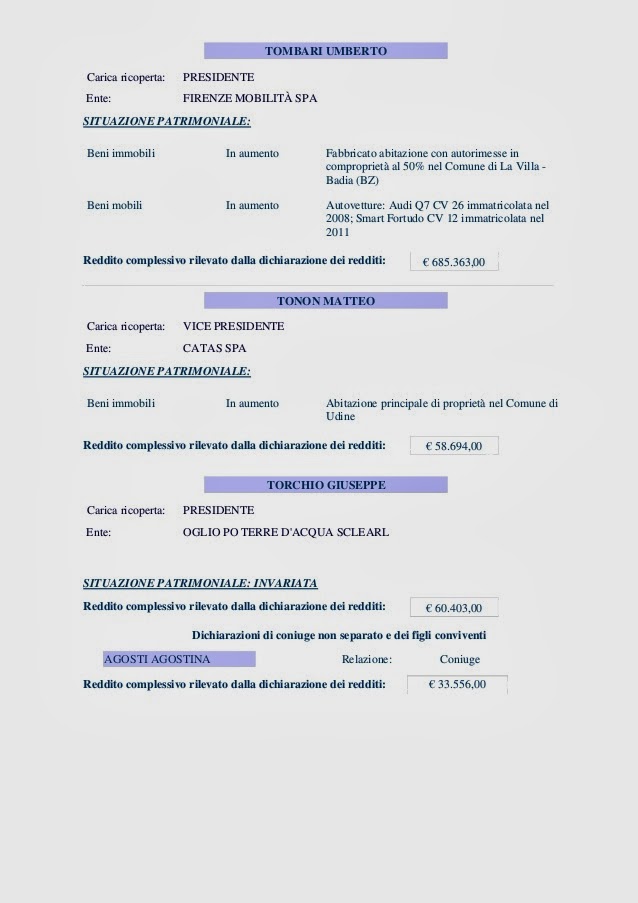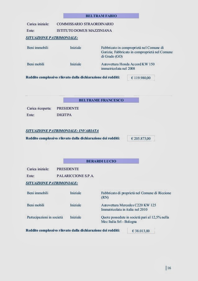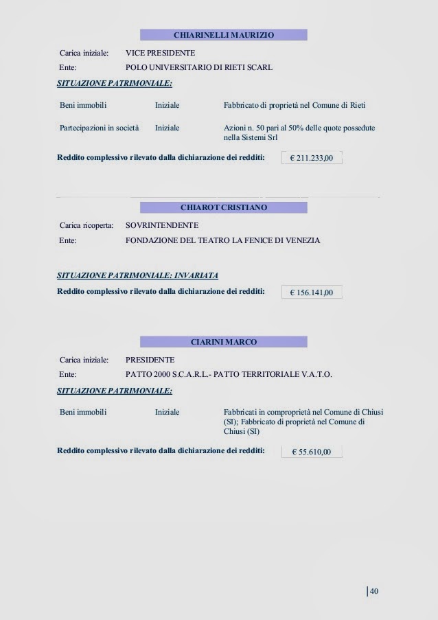 cittadino, lo stato patrimonale degli amministratori della Cosa