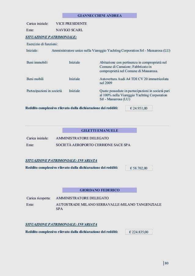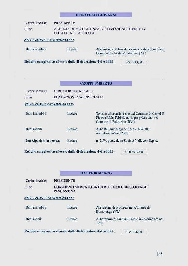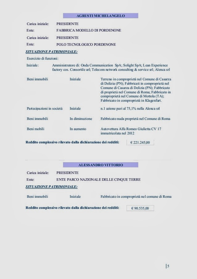 INCARICHI, POLTRONE OCCUPATE, NOMINE VARIE, PATRIMONIO IMMOBILIARE E