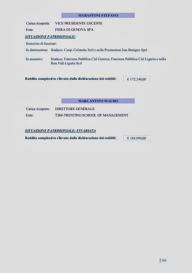 generali di comunicare (come avviene per i deputati) redditi e