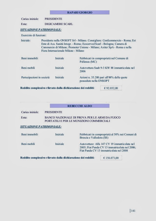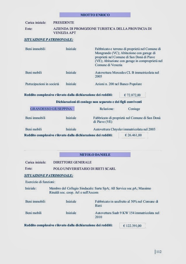 INCARICHI, POLTRONE OCCUPATE, NOMINE VARIE, PATRIMONIO IMMOBILIARE E