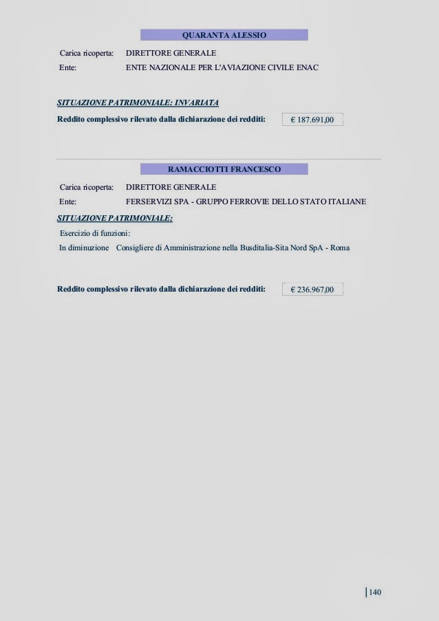 Dalla A di Abate (Pietro, segretario Camera di commercio di Roma) alla Z di Zoccali (Stefano Salvatore, direttore generale dell’ente per l’irrigazione della Puglia, Lucania e Irpinia) eccoli tutti i redditi e i patrimoni dei dirigenti dello Stato e della Pubblica amministrazione, degli enti pubblici, delle aziende autonome e speciali, nonché delle controllate dallo Stato