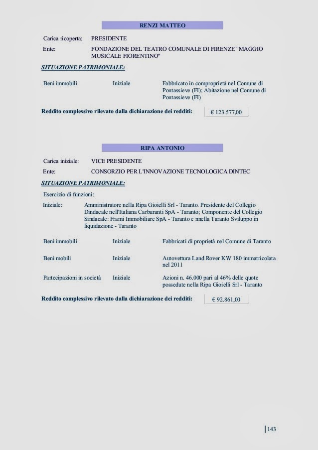 cittadino, lo stato patrimonale degli amministratori della Cosa