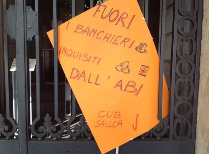 Spazio e visibilità che in parte abbiamo acquisito anche noi come CUB-SALLCA, perché a Torino, in Piazza San Carlo, davanti alla sede della principale banca italiana, chiusa per sciopero, il presidio era stato organizzato da noi, dopo le iniziative dei giorni prima (volantinaggi ai lavoratori, tra cui il primo volantinaggio al nuovo grattacielo di Intesa Sanpaolo, sensibilizzazione della clientela davanti alle banche di varie città): sono eventi ripresi dai TG regionali di Campania e Piemonte e da Radio Popolare con due interviste ad un nostro dirigente (presto sarà tutto disponibile sul nostro sito).