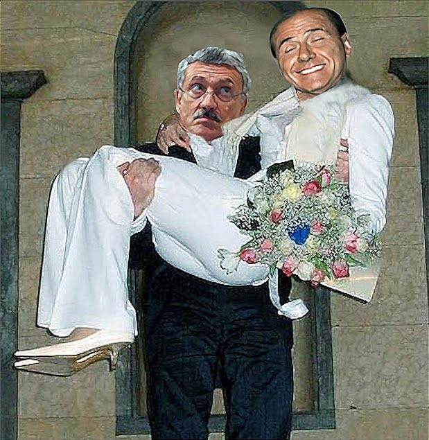 La Democrazia Cristiana diventa Unione di Centro, i fascisti si trasformano in futuristi, la Confindustria in Polo della Libertà, i sindacati diventano gialli e padronali, Montezemolo è di sinistra [dice qualcuno dalle prime pagine di carte igieniche], l’opposizione vera la farà il Terzo Polo con le Api e le Coccinelle; ci manca solo che Capezzolone saluti a pugno chiuso in mimetica e passamontagna, dichiarando sempre il suo amore per Silvio, e siamo tutti a posto.