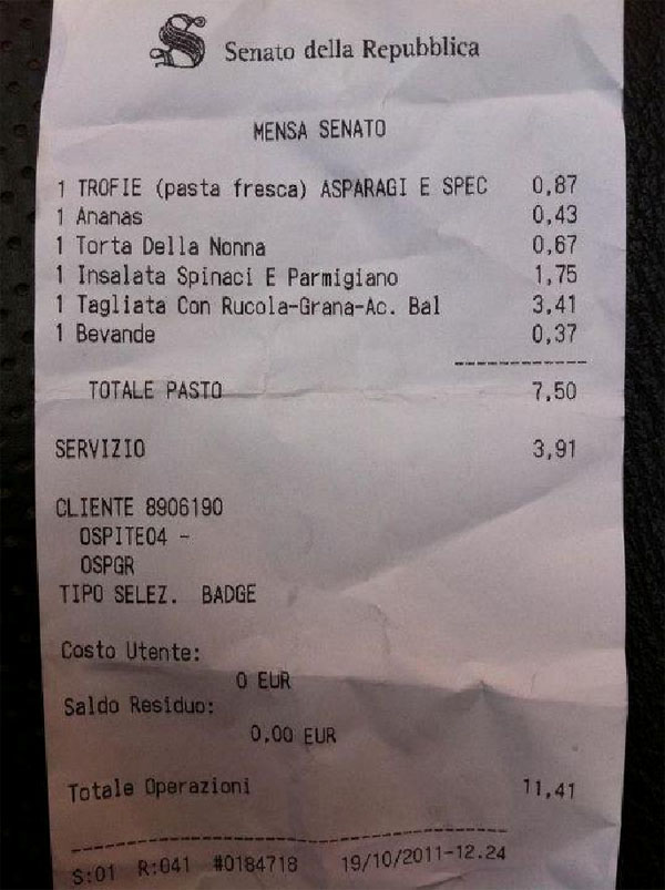 IL COSTO DI UN PASTO PER I POVERI SENATORI