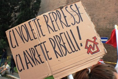 L’altra strada passa attraverso la repressione. Là dove non arrivano i mass media, là dove il disagio è troppo forte, là dove le menti non si annebbiano perché la realtà picchia più duro , là dove l’esigenza e i bisogni sono in termini di vita e di morte, là arriva la repressione. Il bisogno sociale viene regolamentato dalla repressione, dalla nuova caccia alle streghe, dove tutto passa attraverso la criminalizzazione dell’appellativo “terrorista” E quindi diventa terrorista la popolazione che si rifiuta di verdersi tagliata la montagna, che non vuole vedersi militarizzata con strumenti di morte i propri territori, terrorista sono i senza tetti, gli immigrati, i diversi. E’ come tale vanno repressi preventivamente attraverso la magistratura e contestualmente attraverso le “forze dell’ordine costituito”