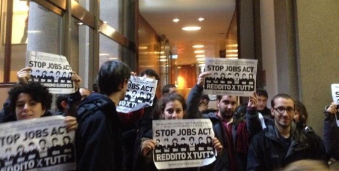 Ieri (25.11) è stato approvato alla Camera il Jobs Act, quest’oggi alle 14 abbiamo occupato il Ministero del Lavoro. Per prendere nuovamente la parola e ripetere con forza quanto affermato in questi mesi e, più in particolare, lo scorso 14 novembre, con lo Sciopero sociale che ha inondato il Paese: Renzi e Poletti non parlano a nostro nome!
