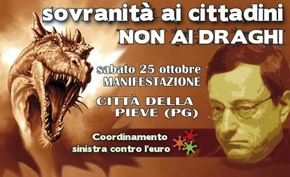 Sabato 25 ottobre 2014 il Coordinamento della Sinistra contro l’euro si recherà a Città della Pieve, partenza alle ore 14.30 da Piazza del Plebiscito, presso la residenza umbra di Mario Draghi.