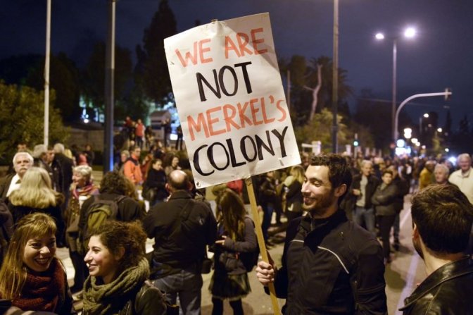 A Berlino, fuori dal ministero della finanza, un po’ prima dell’incontro tra Schaeuble e Varoufakis c’erano dei cartelli con su scritto: “Cominciamo dalla Grecia, cambiamo l’Europa”.