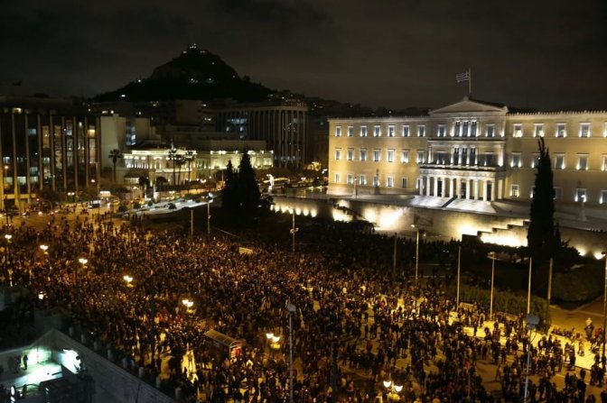 Ieri la gente e’ scesa in strada a migliaia a piazza Syntagma, davanti al parlamento. Stessa storia anche in altre città del paese. Non c’è stato nessun tipo di organizzazione e nessun canale televisivo greco ha coperto l’evento. L’organizzazione e’ stata spontanea coi social media ed alcune radio sparse per il paese non in mano ai privati (residui dopo la chiusura della ERT, la TV pubblica, nella capitale). Avreste dovuto sentire la gente parlare in queste emittenti radio. Da quando si e’ saputo il ricatto di Draghi una corrente elettrica ad altissimo voltaggio ha fatto insorgere e fumare dalla rabbia tutto e tutti. Che sono molto incazzati.