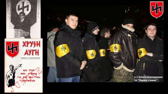 Ad un primo sguardo può sembrare tutto chiaro: i “sionisti americani”, l’”ingerenza sionista dell’UE” e gli “usurai internazionali” dell’Ovest incitano il crollo del regime filo-russo di Yanukovych, alimentando la rivolta filo-europea. Analizzando più a fondo, però, si scorge un problema: in prima linea negli scontri “sionistici” contro la Russia si trovano neonazisti ucraini, che condividono gli stessi ideali di Alba Dorata, quelli che hanno giurato di distruggere qualsiasi monumento in terra ucraina, che ricorda la vittoria antifascista dei popoli e dell’Unione Sovietica, quelli che hanno l’intento di riabilitare i collaborazionisti dei tedeschi e le SS ucraine.
