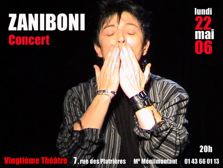 Autore, compositore e interprete franco-italiena, ZANIBONI e’ a lei sola fado, rock e blues. La sua voce e’ maglifica, roca, calda, e commovente.